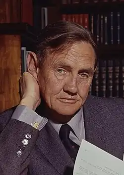 Gorton obtained a seat as a Liberal Senator at the 1949 Election and was promoted by Robert Menzies to become Minister for the Navy 9 years later and he went on to serve in various portfolios in both the Menzies and Holt governments. In 1967, Prime Minister Harold Holt appointed Gorton as Leader of the Government in the Senate. Soon after, Holt drowned and Gorton decided to run for the office of prime minister, though he lacked a House of Representatives seat. Liberal Patriarch Robert Menzies favoured Paul Hasluck. Future Prime Minister Malcolm Fraser firmly backed Gorton. The leadership ballot was fervently contested.[5] In his 2010 Memoir, Lazarus Rising, long serving Liberal Prime Minister John Howard wrote that Gorton was the first person to win the leadership of an Australian party "through the force of his television appearances". In the lead up to the leadership vote, Gorton was little known but appeared on television, where, wrote Howard, he gave direct answers and his "relaxed, laconic manner, coupled with his crumpled war-hero face, really appealed to viewers".[6] Political commentator Alan Reid said:[5]