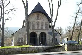 The church was dedicated to the apostles Simon and Jude whose feast day on October 28 fell on the birthday of Emperor Henry III, who often stayed in Goslar.[2] About the same time, his consort Agnes of Poitou founded the collegiate church of St. Peter in Goslar which has not survived.[3] In 1056 Pope Victor II and Emperor Henry III met in Goslar and visited the church. When Henry died in the same year, his heart was buried within the walls of Goslar Cathedral.