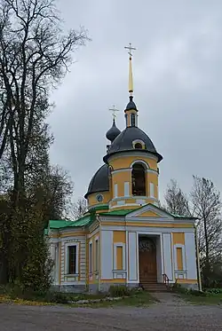 The Trinity Church was built between 1755 and 1764 in barocco style. It has an oval shape and a low dome. The church was closed in 1939 and disused since the 1980s. In 1993, it was transferred to Russian Orthodox Church and restored. Currently it is the oldest and the best preserved building of the estate.[5]