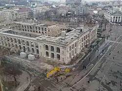 Since 18 February, activists began to protest against the developer, but the Berkut special unit brutally dispersed the action, arresting some protesters. The illegal reconstruction was continuing with its roof being dismantled and a construction right in the middle of the court beginning, however the Revolution of Dignity had started in Ukraine later that year and the work had to be stopped in February 2014. That month the trials against Ukrrestavratsiia had started and later the approval of the reconstruction was canceled and their ownership of the building was decided to be illegal.