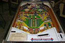 Like other manufacturers, Gottlieb first made mechanical pinball machines, including the first successful coin-operated pinball machine Baffle Ball in 1931.[4] Electromechanical machines were produced starting in 1935. The 1947 development of player-actuated, solenoid-driven 2-inch bats called "flippers" revolutionized the industry, giving players the ability to shoot the ball back up into the playfield for more points. Flippers first appeared on a Gottlieb game called Humpty Dumpty, designed by Harry Mabs. By this time, the games also became noted for their artwork by Roy Parker.