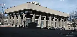The dominant feature of Government Center is the enormous, imposing, and brutalist Boston City Hall,[4] designed by Kallmann McKinnell & Wood and built in the 1960s as part of Boston's first large urban renewal scheme. While considered by some to have architectural merit, the building is not universally admired, and is sharply unpopular among locals. Furthermore, it is resented for having replaced the Victorian architecture of Boston's Scollay Square,[5] a lively commercial district that lapsed into squalor in the twentieth century.[6]
