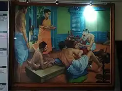 Art of a surgery in progress in ancient India, on display at the hospital