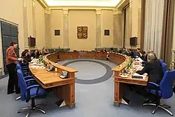 The Government of the Czech Republic (Czech: Vláda České republiky) exercises executive power in the Czech Republic. The members of the government are the Prime Minister of the Czech Republic (Chairman of the Government), the deputy prime minister and other ministers. It has its legal basis in the Constitution of the Czech Republic.