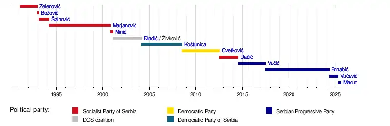 Since 23 December 1990 (the first multi-party parliamentary elections held following the post-World War II communist rule), Serbia has had a total of eighteen governments headed by fourteen different prime ministers.