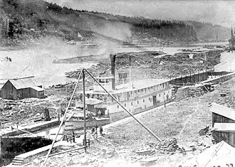 ![]() Governor Grover in Willamette Locks, March 1873, shortly after completion of locks | |