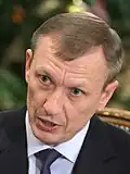 Vladimir Barabanov was appointed again, but his second reign did not last long. In May 1996 an address of pro-Yeltsin Bryansk politicians appeared, in which Barabanov was accused of disloyalty to the federal government, close cooperation with the Communists and Lodkin. Barabanov allegedly created "a situation for the defeat of democracy", meaning possible low results of Yeltsin in Bryansk Oblast in the upcoming presidential election.[3] Barabanov's deputy and successor Alexander Semernyov was defeated by Lodkin in December 1996. In 2000, Lodkin's main competitors were businessmen Nikolay Denin and Yury Dyomochkin. Lodkin received 29% of the vote and was declared winner as the first-past-the-post system was used that year.[4]