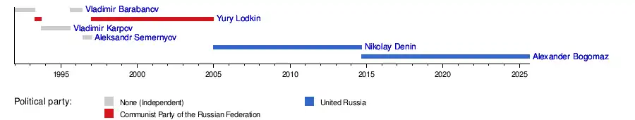 | 5 | | Nikolay Denin (born 1958) | 28 December 2004 – 9 September 2014[7] | United Russia | 2004 | |