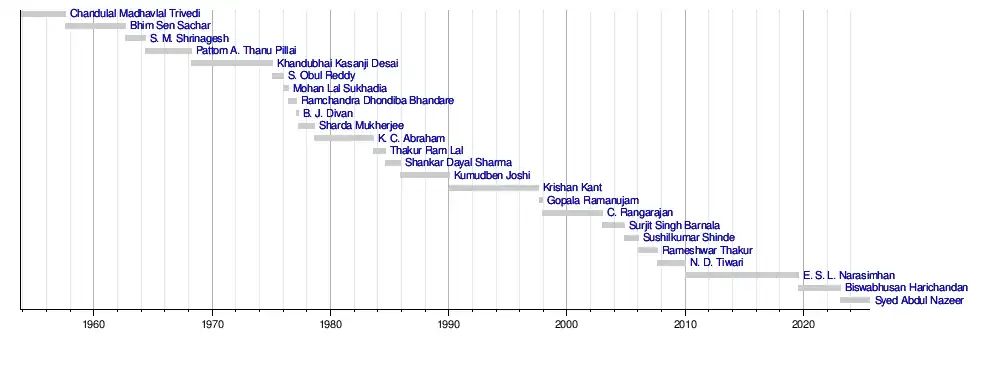 | 20 | | Justice (Retd) Syed Abdul Nazeer (born 1958) | Karnataka | 24 February 2023 | Incumbent | 2 years, 175 days | Droupadi Murmu |