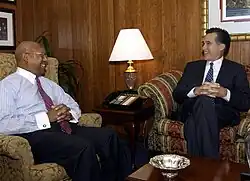 The budget proposed requiring state workers to make larger contributions toward the cost of the health insurance they received as an employee benefit.[30] An attempt to persuade the legislature to relax state rules to allow for the outsourcing of state services to private contractors was rebuffed.[30] However, Romney was more successful with efforts to reorganize and consolidate some of the agencies of the state executive branch (such as Health & Human Services), trimming the ranks of state government workers by 2,000 to 3,000 workers with the 2004 budget.[28][31] Another example of his government restructuring efforts was his plan to reduce state expenditures on legal proceedings by revamping the court system, cutting the numbers of state-employed attorneys, and refusing to increase state payments to attorneys who accepted cases of defendants too poor to afford private attorneys (Massachusetts' court-appointed attorneys were being paid some of the lowest hourly rates in the nation).[11][32] Romney vetoed a funding bill for payment of attorneys representing the poor, declaring that it was more important for the state to balance its books than to pay attorneys, and that the attorneys should provide the services pro bono.[32][33] The cuts in payments for representation of the indigent provoked outraged attorneys to strike.[32][33] The plan to remake the court system was unsuccessful.