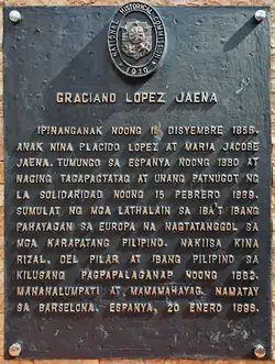 - ^ a b c d Yoder, Robert L. (August 7, 1999). Graciano López Jaena. Department of Social and Cultural Anthropology, Faculty of Social Sciences, University of Vienna.
