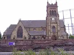 | St Michael's Church | Church Road 53°21′08″N 2°53′49″W / 53.3521°N 2.8970°W | ![]() | 1875–77 | This Anglican church was designed by Thomas D. Berry and Son, and replaced earlier churches built respectively in 1225 and 1715. The church is constructed in sandstone with slate roofs, and consists of a nave with a clerestory, aisles, a south porch, transepts, a chancel with an apse and chapels, and a northwest tower.[25][26] |