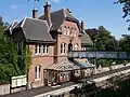 | Cressington railway station | Knowsley Road 53°21′32″N 2°54′44″W / 53.3588°N 2.9121°W | ![]() | 1873 | The railway station was built for the Cheshire Lines Committee. It is constructed in brick with a slate roof. It is in two storeys, with a single-storey extension on each side. The entrance is in the upper storey, which has a gable with a pierced bargeboard. The windows are sashes under arched heads. The chimneys are tall and moulded. On each platform is a cast iron canopy.[7][35] |
