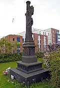 | War memorial | Earle Road 53°23′56″N 2°56′37″W / 53.39881°N 2.94371°W | ![]() | 1921 | The war memorial originally stood in front of St Dunstan's church, and was later moved across the road to the south of the church. It is in sandstone, and consists of a square two-stepped base, a square plinth, and a square block. On the block is a tall Celtic cross, richly decorated with interlace designs and geometric patterns. On the block is an inscription, and on the plinth is a plaque containing the names of those lost in the First World War.[54] |