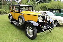 The Graham-Paige 835 introduced at the New York Automobile Show in January 1928 was the largest of that year's Graham-Paige range. It was powered by a 120 bhp, 5279 cc straight eight-cylinder L-head engine bought in from Continental. The transmission was a Warner Gear four-speed unit with first intended only as a reserve or emergency gear, second for normal starts and third and fourth as a choice as top gear depending on road conditions. The 135-inch (3,400 mm) wheelbase chassis had balloon tires and pressed steel wheels.