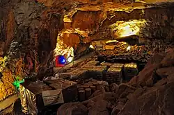 The Grand Canyon Caverns (Havasupai: Ŧathiil Ñwaʼa or Ŧathiil Ñhaʼa,[2] 35°31′44″N 113°13′54″W / 35.52889°N 113.23167°W) are located a few miles east of Peach Springs, Arizona and lie 210 feet (64 m) below ground level. They are among the largest dry caverns in the United States. Because of the lack of water, stalagmites and stalactites are rare in the caverns.