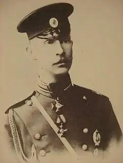Grand Duke Dmitry Konstantinovich of Russia (Russian: Дми́трий Константи́нович; 13 June 1860 – 28 January 1919) was a son of Grand Duke Konstantin Nikolayevich and a first cousin of Alexander III of Russia. He followed a military career. Although he never played any political role, as a relative of Tsar Nicholas II, he was executed by firing squad at the walls of Peter and Paul Fortress during the Russian Civil War.