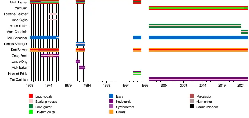 On January 2, 2024 Bruce Kulick announced he was departing Grand Funk Railroad after 23 years, having played his final concert with the group on December 14, 2023 in Marietta, Ohio, citing that he wanted to focus on other projects.[28] On January 4, 2024 Grand Funk Railroad announced that singer-guitarist Mark Chatfield (The Godz, Rosie, Bob Seger and the Silver Bullet Band) would replace Bruce Kulick as permanent member of GFR.