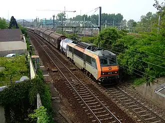![]() A train travels on the line near Sucy-en-Brie | |||