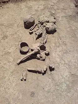 Grave fields are often arranged on elevated ground outside settlements. The arrangement of graves is often east to west — the head of the body placed on the western end, looking east.[1]