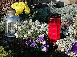 A grave is a location where a dead body (typically that of a human, although sometimes that of an animal) is buried or interred after a funeral. Graves are usually located in special areas set aside for the purpose of burial, such as graveyards or cemeteries.[1]