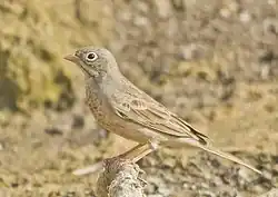 The grey-necked bunting (Emberiza buchanani), sometimes referred to as grey-hooded bunting (a name also in use for chestnut-eared bunting[3]) is a species of bird in the family Emberizidae. It breeds along a wide distribution range from the Caspian Sea to the Altai Mountains in Central Asia and winters in parts of Southern Asia. Like other buntings it is found in small flocks.