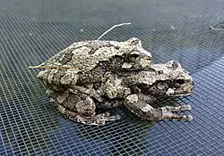 It is sometimes referred to as the eastern gray treefrog, northern gray treefrog,[3] common gray treefrog, or tetraploid gray treefrog to distinguish it from its more southern, genetically distinct relative, Cope's gray treefrog.