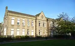 On the north-west side of the gardens (on Mill Lane) stands a two-storey building dating from 1822. This was built as a school for the poorhouse, with boys on one floor and girls on the other. This was the first free education provided to females in this area. It was replaced by a new pair of schools (one for girls one for boys) further along Mill Lane, in 1838. These were built by Sir John Gladstone of Leith, William Gladstone's father. This connection led to the first-mentioned ex-school being named "Gladstones".