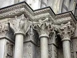 The twin towers of the Grossmünster are regarded as perhaps the most recognized landmark in Zurich.[5] Architecturally, the church is considered Romanesque in style and thus a part of the first pan-European architectural trend since Imperial Roman architecture. In keeping with the Romanesque architectural style, Grossmünster offers a great carved portal featuring medieval columns with grotesques adorning the capitals. A Romanesque crypt dates to the 11th and 13th centuries.