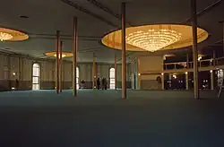 By decree signed by Belgian education minister André Bertouille in 1983, the mosque was put under the control of the Muslim World League, which then received three positions on its board of directors.[10] The mosque is also financed by the Muslim World League, which in turn is financed by the government of Saudi Arabia.[11] The Islamic Cultural Center hosts a school and an Islamic research centre whose objectives are to propagate the Muslim faith. The prayers are in Arabic.[11] The centre also provides courses of Arabic for adults and children, as well as introductory courses in Islam and other activities geared towards solidarity.[12]