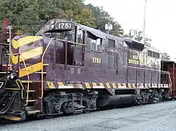 GSMR had a current operational diesel locomotive roster of seven 4-axle (B-B) units, as any 6-axle (C-C) unit would be too big for the tunnels, and too long for some the line's tight or sharp curves. All of the current units were built by The Electro-Motive Division of General Motors (EMD). GSMR has two GP9s, Nos. 1751 and 1755, a GP30 No. 2467, two GP38-2s Nos. 2668 and 2335, an F9A No. 4210, .[9][10]