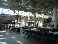 During this time, Atlantic City was led by mayor Edward L. Bader, known for his contributions to the construction, athletics and aviation of Atlantic City.[49] Despite opposition, he had Atlantic City purchase the land that became the city's municipal airport and high school football stadium, both of which were later named Bader Field in his honor.[50] He led the initiative, in 1923, to construct the Atlantic City High School at Albany and Atlantic Avenues.[49] Bader, in November 1923, initiated a public referendum, during the general election, at which time residents approved the construction of a Convention Center. The city passed an ordinance approving a bond issue for $1.5 million to be used for the purchase of land for Convention Hall, now known as the Boardwalk Hall, finalized on September 30, 1924.[51] Bader was also a driving force behind the creation of the Miss America competition.[52]