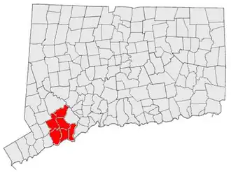 Bridgeport–Stamford–Danbury is a metropolitan area in the U.S. state of Connecticut. The area is located in Southwestern Connecticut.[2] In its most conservative form, the area consists of the Metropolitan Connecticut region, including the City of Bridgeport and five surrounding towns—Easton, Fairfield, Monroe, Stratford, and Trumbull. This area has a population of more than 305,000.