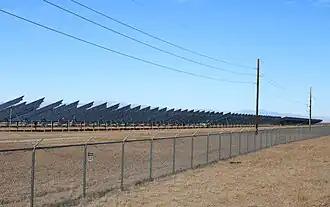 The facility occupies about 200 acres of a 320 acre plot of water-constrained former agricultural land, and is sited adjacent to the Alamosa photovoltaic power plant which was completed two years earlier.[2][3] It was developed and built by SunPower using the company's most-advanced high-efficiency technology. It contains about 50,000 modules which are mounted onto T-20 trackers.[2] This tracker design was newly released in 2010, and was marketed as enabling the highest production.[4][5]