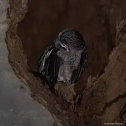 The sooty owl or greater sooty owl (Tyto tenebricosa) is a medium to large owl found in south-eastern Australia, Montane rainforests of New Guinea and have been seen on Flinders Island in the Bass Strait. The lesser sooty owl (T. multipunctata), is sometimes considered to be conspecific with this species, in which case they are then together referred to as sooty owls.[3] It is substantially smaller and occurs in the wet tropics region of North Queensland, Australia.