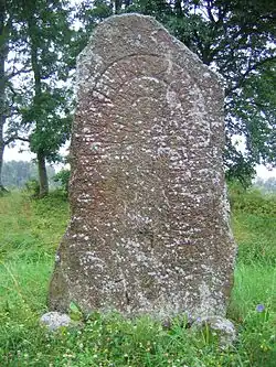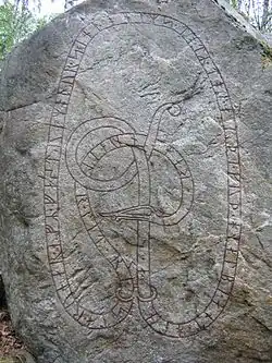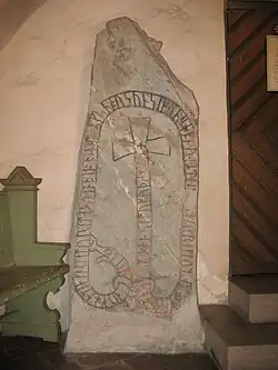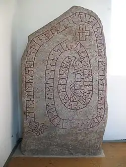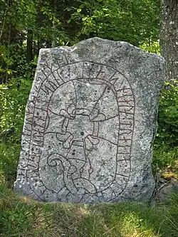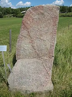 About 3,000 runestones from the Viking Age have been discovered in Scandinavia of which c. 2,700 were raised within what today is Sweden.[13] As many as 1,277 of them were raised in the province of Uppland alone.[14] The Viking Age coincided with the Christianisation of Scandinavia, and in many districts c. 50% of the stone inscriptions have traces of Christianity. In Uppland, c. 70% of the inscriptions are explicitly Christian, which is shown by engraved crosses or added Christian prayers, while only a few runestones are explicitly pagan.[15] The runestone tradition probably died out before 1100, and at the latest by 1125.[14]