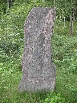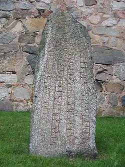 Sawyer (2000), on the other hand, reacts against this commonly held view and comments that the vast majority of the runestones were raised in memory of people who are not reported to have died abroad.[22] She argues that few men who went abroad were honoured with memorials and the reason is that the runestones were mainly raised because of concerns at home, such as inheritance issues.[24] Such concerns would have arisen when a family knew that a relative would not return from abroad.[25]