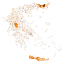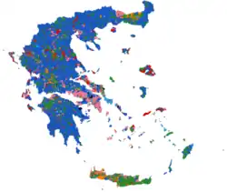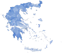 There was also criticism of the German-led austerity programmes.[28] Golden Dawn's campaign also called for the placement of land mines on the border with Turkey, the revocation of eurozone loan agreements, nationalisation of banks that received state loans and the nationalisation of natural resources. It was also said to have gained support by organising patrols in high-crime neighbourhoods (a similar tactic to Jobbik, who gained entry into the Hungarian parliament for the first time[29][30]). In turn PASOK and New Democracy also ratcheted up rhetoric against illegal immigration, while New Democracy feared further loss of votes to opponents of the austerity measures. LAOS, in turn, called for immigrants to be sent to uninhabited islands.[31]