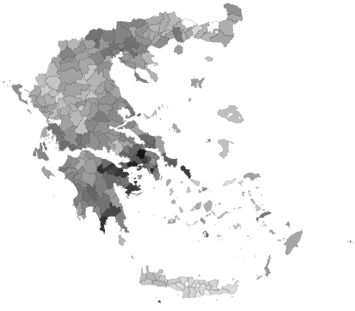 - igraphics.gr, election results visualized. Distribution maps of every party for further analysis.