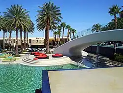 In January 2003, Green Valley Ranch became the first locals casino in the Las Vegas Valley to receive an AAA Four Diamond Award.[32][33] An expansion began at the end of the year. It included 296 hotel rooms, built on the property's north side, in between a parking garage and the pool area. The project brought the room count to 497, and also added more meeting space. The spa was also enlarged,[34][35][36][37] and three high-end suites were added in an effort to attract high rollers from the Las Vegas Strip. The expansion cost $115 million, and began opening in January 2005.[38] A poker room was added later that year.[39] The expansion also included several new restaurants,[18] such as Hank's Fine Steaks & Martinis, a steakhouse named after Hank Greenspun.[40][41] Phase three of the expansion project opened in October 2006, adding additional restaurants and a new parking garage.[42] The resort's pool area is popular among local residents and has hosted pool parties going back to 2005.[43]
