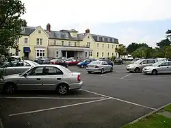 There is one main commercial area, with a SuperValu store (previously a Superquinn) supermarket, under that chain's HQ, which in turn had replaced the local cinema), the Marine Hotel, a post office, and other banking, dining and retail operations.