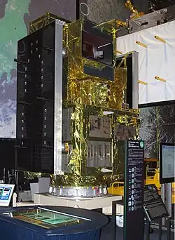 Greenhouse Gases Observing Satellite (GOSAT), also known as Ibuki (Japanese: いぶき, Hepburn: Ibuki; meaning "breath"[4]), is an Earth observation satellite and the world's first satellite dedicated to greenhouse gas monitoring.[5] It measures the densities of carbon dioxide and methane from 56,000 locations on the Earth's atmosphere.[6] The GOSAT was developed by the Japan Aerospace Exploration Agency (JAXA) and launched on 23 January 2009, from the Tanegashima Space Center.[6] Japan's Ministry of the Environment, and the National Institute for Environmental Studies (NIES) [7] use the data to track gases causing the greenhouse effect, and share the data with NASA and other international scientific organizations.[5]