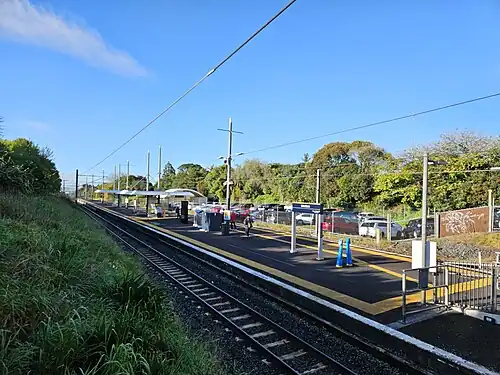 Greenlane railway station serves the Southern Line and Onehunga Line of the Auckland railway network. It was opened circa 1877.[2] It has an island platform and is reached via a ramp from Green Lane East. It is the nearest station to Ellerslie Racecourse, Greenlane Clinical Centre (formerly known as Green Lane Hospital), ASB Showgrounds and Cornwall Park.