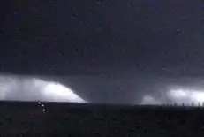 As the main tornado continued through rural areas, oil tanks were destroyed, with oil strewn across pastures and a road.[28] The very large tornado continued to grow in size as it approached the city of Greensburg from the south. The tornado then reached its maximum width of 1.7 miles (2.7 km) as determined by damage.[29] At 9:41 p.m., the National Weather Service office in Dodge City issued a tornado emergency for Greensburg, stating that "a violent tornado was on a direct path for portions of Greensburg this is an emergency situation for Greensburg".[30]