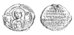 Gregory Kamateros married Irene Doukaina, probably a daughter of the protostrator Michael Doukas and hence niece-in-law of Alexios I. Irene Doukaina outlived her husband, but her date of death is unknown.[4][10] The union led to the emergence of the Doukas-Kamateros line,[10] which held high office under the Komnenian emperors throughout the 12th century.[11] Most of the couple's children are unknown. A son named Michael died young, and a contemporary Theodore Kamateros was also likely a son of the couple. The best known of Gregory's children are the high official John Kamateros, and the high official and theologian Andronikos Kamateros. The latter's son Basil Doukas Kamateros was also a high official, while his daughter Euphrosyne Doukaina Kamatera became empress to Alexios III Angelos (r. 1195–1203).[10][11][12]
