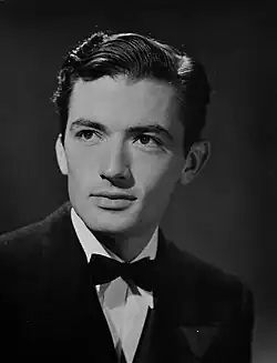 After gaining stage recognition, Peck was offered his first film role at RKO Radio Pictures, the male lead in the war-romance Days of Glory (1944), directed by Jacques Tourneur, alongside top-billed Tamara Toumanova, a Russian-born ballerina.[14] Peck portrayed the leader of Russian guerrillas resisting the Germans in 1941 who stumble across a beautiful Russian dancer (Toumanova), who had been sent to entertain Russian troops; they protect her by letting her join their group.[14][22] During production of the film, Tourneur "untrained" Peck from his theater training where he was used to speaking in a formal manner and projecting his voice to the entire hall.[23] Peck considered his performance in the film as quite amateurish and did not wish to watch the film after it was released.[23] The film lost money at the box office, disappeared from theaters quickly,[24][25] and was largely dismissed by critics.[26][23]