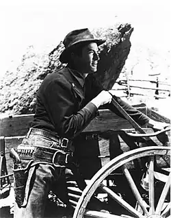 Peck's next Western was Only the Valiant (1951), a low-budget movie; Peck disliked the script and would later label the film as the low point of his career.[136] Peck's non-exclusive contract with David O. Selznick permitted Selznick to sell Peck's services to Warner Bros for this movie after running into financial difficulties.[136] The plot of the film is listed as "an unpopular, strict leader gathers together a rag-tag group of men and leads them on an extremely dangerous mission, turning them into a well-oiled fighting machine by the end and earning respect along the way."[137] Peck portrays a U.S. army captain and the mission is to protect an undermanned army fort against the attacking Apaches.[138] Peck's romantic interest was played by Barbara Payton.[46][139] Variety's review said "In this cavalry yarn...great pains have been exerted to provide interesting characters. Peck makes the most of a colorful role."[140] It earned a moderate $5.7 million, ranking 35th in sales for the year.[141] This little-remembered picture receives mixed reviews today, although Peck's acting is praised.[ac]