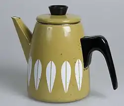 From 1954 to 1957 she participated in the "Design in Scandinavia" exhibition, shown in several places in the United States and Canada.[2] Near the end of the 1950s, her products, manufactured by Hadeland Glassverk and Cathrineholms Jernværk, were commonly found in Norwegian homes.[1] 'Sensasjonskasserollen' ('The sensation casserole') was particularly successful, with 150,000 units sold in 1964.[5] Her designs were often inspired by American art, characterized by clear, plain colours and simple shapes.[2] Kittelsen also designed informal, inexpensive jewellery made from silver and vitreous enamel.[1]