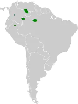 Grey-legged tinamous are native to South America, including Columbia, Peru, Ecuador, Guyana, Venezuela, and northern Brazil.[9][10] However, its distribution could be even further as the population is sparsely distributed and found in fragmented landscape. It is found in dry shrubland up to 500 m (1,600 ft) altitude. As a poor soil specialist, the grey-legged tinamous are commonly found in Amazonian white-sand forests. These forests are characterized by low-hanging canopies and dense foliage, allowing the grey-legged tinamous to remain inconspicuous. They have also been documented in peatland habitats.[10]