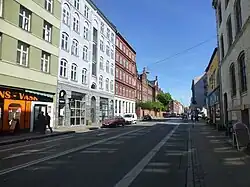 Griffenfeldsgade is a street in the Nørrebro district of Copenhagen, Denmark, running from Nørrebrogade in the northeast to Åboulevard on the border to Frederiksberg in the southwest from where it continues as H. C. Ørsteds Vej. The street has a multiethnic character and is home to a number of African specialty stores, coffee shops and restaurants.[1] Between Griffenfeldsgade and Stengade is a small green space, Folkets Park, which was refurbished between 2007 and 2009.[2]